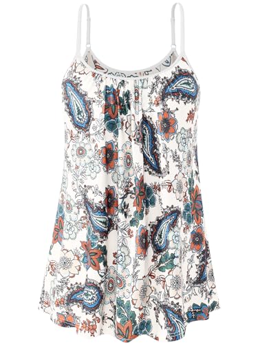 vislivin Débardeur Camisole pour Femmes avec Soutien-Gorge Intégré Debardeur Fluide Décontractée Caraco Bretelles Spaghetti Hauts sans Manche été Top S-4XL Lotus Flower S