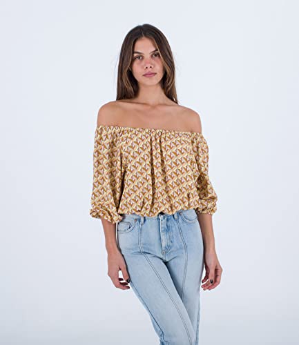 Hurley City Block Off Shoulder Top Chemise, Terre Cuite, M Femme