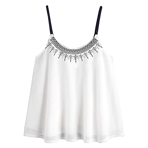 Générique Top Femme Ete,Mousseline De Soie Hauts sans Manches DéBardeur Haut Chemisier Brodé Chemisier (White, L)