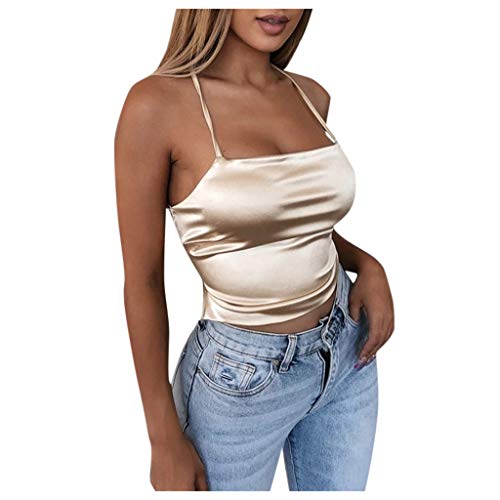 Générique DéBardeur Femme Chic,Tissu Dentelle Slim Dos Crop Fit Party Up Top Soie Sexy Imité Women's Club Women's Blouse (Yellow, S)