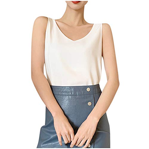 Générique Top Femme Chic Et éLéGant,Mode Sexy en Mousseline De Soie Col en V DéContracté sans Manches Dames Gilet Solide Hauts Amples (White, XL)