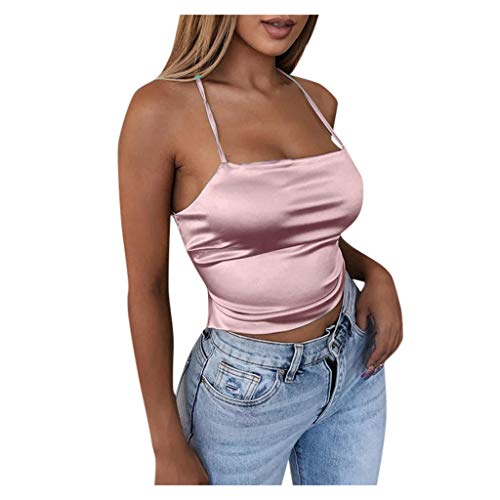 Générique T-Shirts Et DéBardeurs Femme,Tissu Dentelle Slim Dos Crop Fit Party Up Top Soie Sexy Imité Women's Club Women's Blouse (Yellow, L)