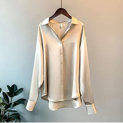 Wxbc 2022 Vêtements pour Femmes Chemise en Soie Vintage Blouse Femme Sheer Top Femme Robe à Manches Longues Chemise de Grande Taille Femme Overshirt-Champagne,XL 58-62kg