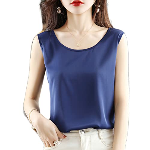 Débardeur Femme en Satin,Top sans Manches D'Été en Soie Bleu Marine Doux pour La Peau Et Brillant Idéal pour Le Shopping De Tous Les Jours Beach Lady's Choice,XXL