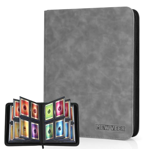 MewVeer Classeur Carte, Album pour Cartes à Collectionner Capacité de 112 Top Loaders 4 Poches, Classeur Rangement Top Loader pour Cartes YGO/MTG/TCG, Gris (NON ADAPTÉ AUX CARTES SANS TOP LOADER)