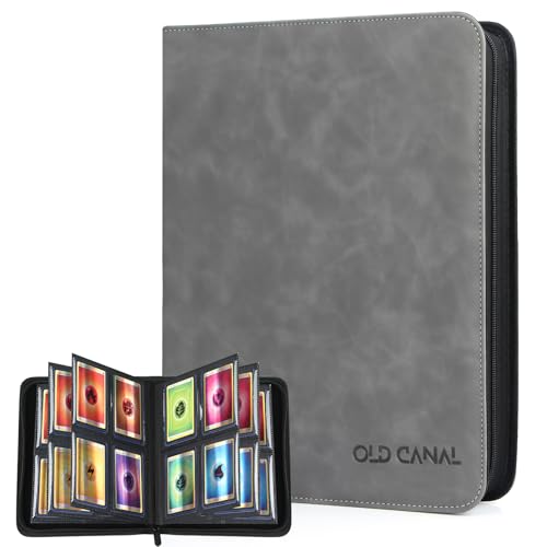Old Canal Classeur Top Loader, Classeur Carte de 4 Poches de 112 Top Loaders, Album de Top Loader avec Fermeture éclair de et Durable, Rangement Carte pour MTG, TCG, Gris (UNIQUEMENT POUR TOP LOADERS)