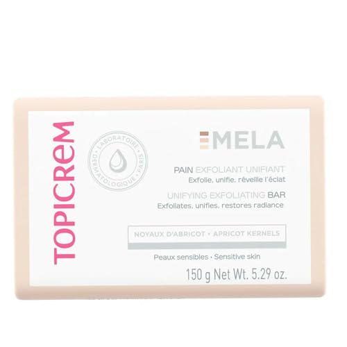 Topicrem - Mela, Pain Exfoliant Unifiant - Unifie le Teint, Exfolie, Réveille l’Éclat - Huile d’Olive, de Coprah et Noyaux d’Abricot - Soin Visage et Corps pour Peaux Sensibles - 150 g