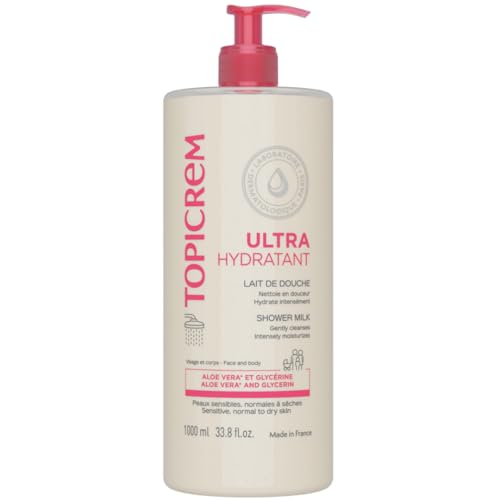Topicrem - Ultra Hydratant Lait de Douche - Nettoie en Douceur, Hydrate la Peau - Visage et Corps - Texture Fondante, Parfum Relaxant, Peaux Sensibles, Normales à Sèches - Fabrication Française - 1L