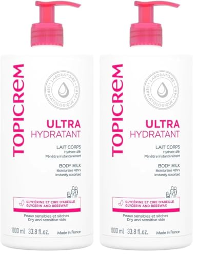 Topicrem - Ultra Hydratant Lait Corps - Hydrate 48h, Relipide, Protège la Peau - Texture Onctueuse, Odeur Délicate - Crème Hydratante pour Peaux Sensibles - Fabrication Française - 2x500 ml