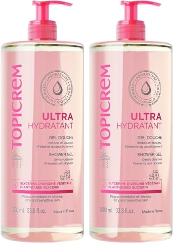 Topicrem - Ultra Hydratant Gel Douche - Nettoie en Douceur, Protège et Hydrate la Peau - Sans Savon, Texture Onctueuse, Odeur Délicate, Peaux Sensibles et Sèches, Fabrication Française - 1000 ml