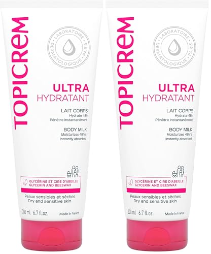 Topicrem - Ultra Hydratant Lait Corps - Hydrate 48h, Relipide, Protège la Peau - Texture Onctueuse, Odeur Délicate - Crème Hydratante pour Peaux Sensibles - Fabrication Française - 200 ml (Lot de 2)