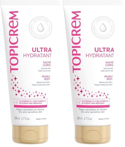 Topicrem - Ultra Hydratant Nacré Corps - Hydrate 24h, Sublime, Illumine la Peau, Léger Voile Nacré - Texture Onctueuse Non Collante, Odeur Délicate, Peaux Sensibles, Fabrication Française - 200 ml