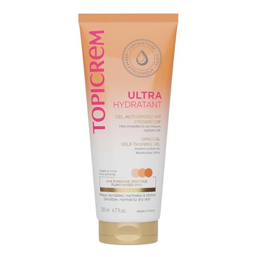 Topicrem - Ultra Hydratant Gel Autobronzant Progressif - Hydrate 24h, Nourrit, Protège - Teint Hâlé Naturel - Peaux Sensibles, Adultes & Adolescents - Fabrication Française - 200 ml