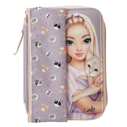 Depesche 13658 TOPModel Kitty and Doggy - Trousse à Crayons remplie en Violet, avec Un Motif de modèle et des Chats, avec de Couleur, des Ciseaux et Bien Plus Encore