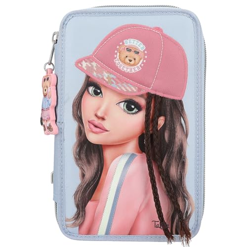 Depesche 13478 TOPModel - Trousse à Crayons remplie à 3 Compartiments en Bleu et Rose, avec Motif de modèle et épingles en Silicone, Trousse et Bien Plus Encore