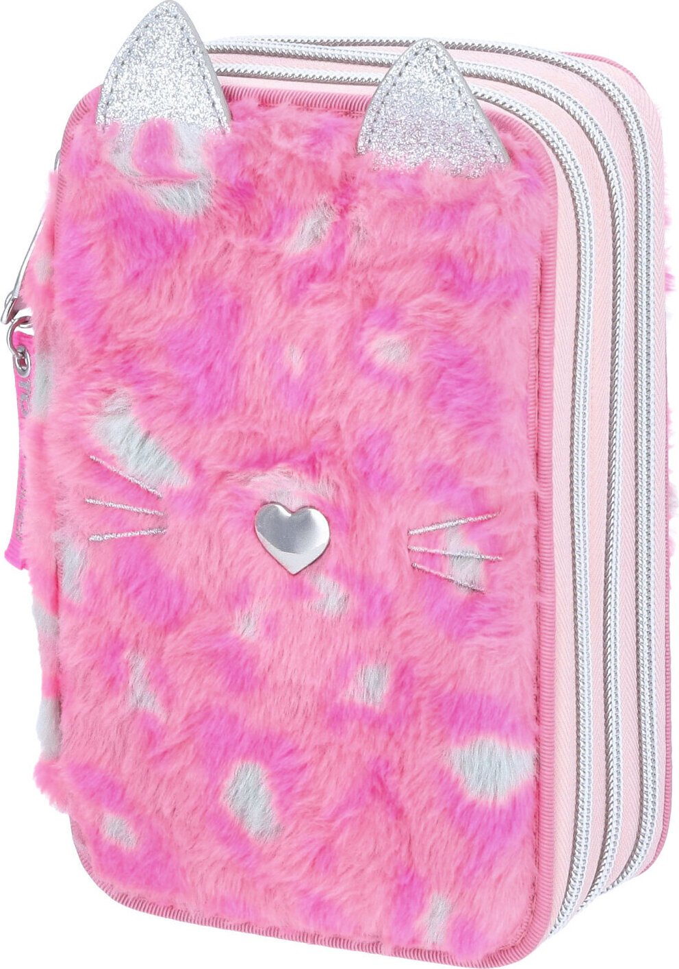 Depesche TOPModel 12787 Trousse à 3 Compartiments remplie de gibier en Rose, avec Nez en cœur et Motif tacheté, Crayons de Couleur, règle, Ciseaux, etc