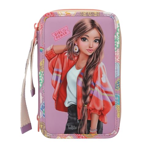 Depesche 13283 TOPModel Girl Power - Trousse à Crayons remplie à 3 Compartiments en Violet, avec Motif de modèle et Lots Multicolores, Trousse à Crayons avec Crayons de Couleur et Bien Plus Encore