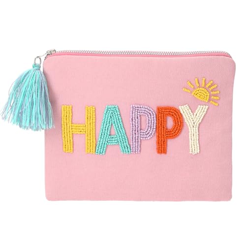 Depesche 13326 TOPModel Juicy - Trousse de Toilette Rose, brodée de Perles et Portant l'inscription Happy, Pochette avec Pompon coloré