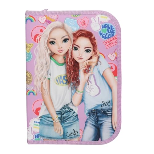Depesche 13284 TOPModel Girl Power - Trousse à Crayons remplie en Rose, avec Motif de modèle et Lots Multicolores, Trousse à Crayons avec Crayons de Couleur, règle, Ciseaux, etc.