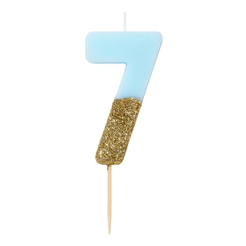 Talking Tables Originales Bougie Chiffre 7 | Topper Gâteau Anniversaire | Paillettes Or et Bleu, BDAY-CANDLE-BLU-7, BLUE