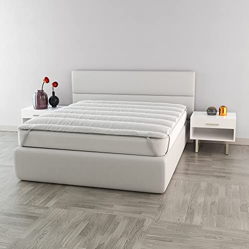 Italian Bed Linen TO-FANCY-BIANCO-2P Fancy Topper, Double, Blanc, Microfibre