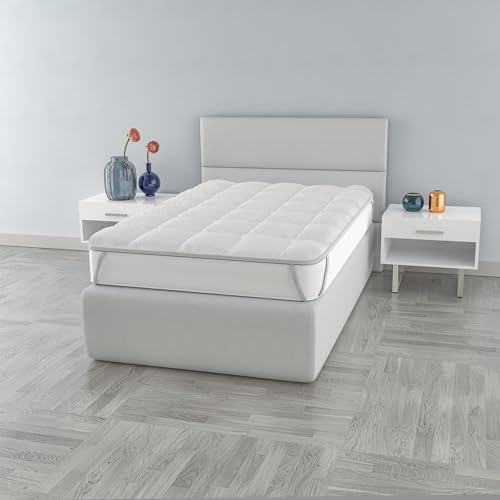 Italian Bed Linen TO-BASIC-BIANCO-1PM Basic Topper, Microfibre, Blanc, 1 Place et Demie 120 x 195 cm