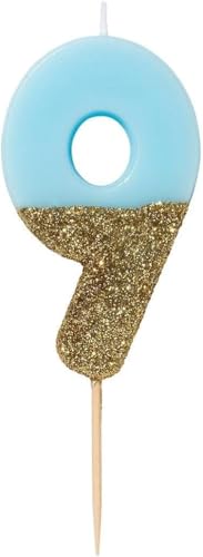Talking Tables Originales Bougie Chiffre 9 | Topper Gâteau Anniversaire | Paillettes Or et Bleu, BDAY-CANDLE-BLU-9, BLUE