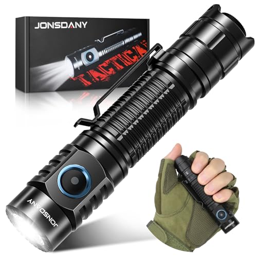 JONSDANY Lampe Torche LED rechargeable, 1200 Lumens, Lampe de Poche LED puissante professionnelle, lampe tactique 6 modes, torches pour camping, randonnée, pêche, cyclisme