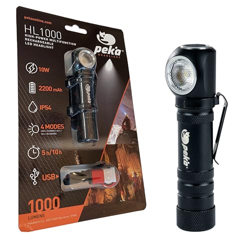 PEKA | Lampe Torche LED Rechargeable | Lampe Frontale Ultra Puissante | Multifonction | Résistant | 10W et 1000 lm | 4 Intensités | 5 à 10 heures d'Autonomie | Batterie au Lithium | PEKA HL1000