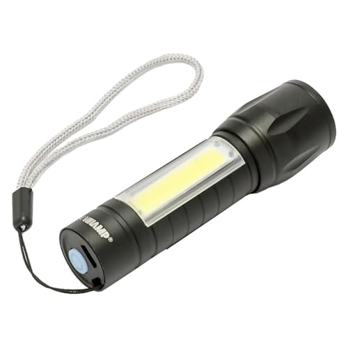 VELAMP THOR MAX : Lampe torche rechargeable LED 1W avec fonction zoom et lanterne latérale, Noir