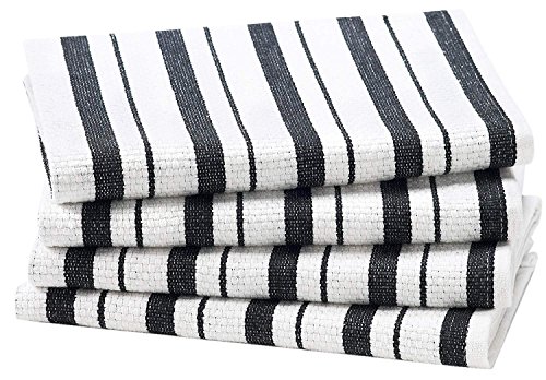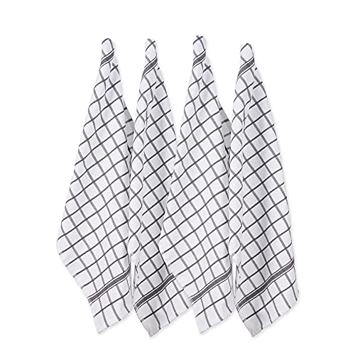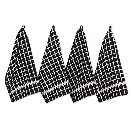 DII Lot de 4 torchons de Cuisine en Coton éponge Lavable en Machine et Ultra absorbants Motif Carreaux Noirs 40,6 x 66 cm