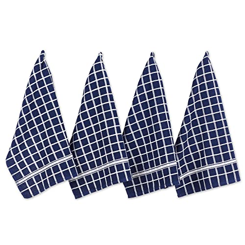 DII Lot de 4 torchons de Cuisine 100% Coton, lavables en Machine, Ultra absorbants, 40,6 x 66 cm, Bleu Nautique à Carreaux