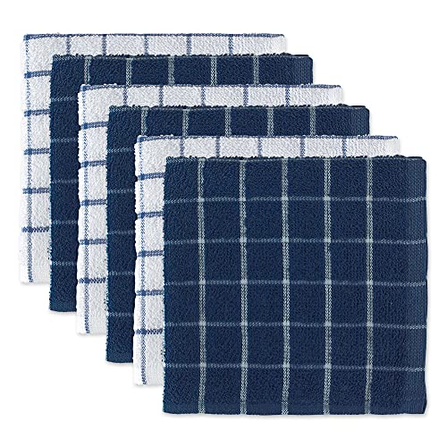DII Lot de 6 torchons de Cuisine 100% Coton, lavables en Machine, Ultra absorbants, 30,5 x 30,5 cm, Motif Carreaux, Bleu Nautique