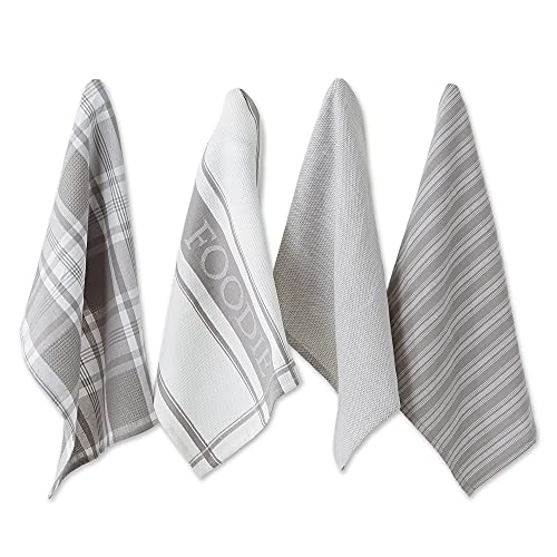 DII Lot de 4 torchons de cuisine 100 % coton, lavables en machine, ultra absorbants, 40,6 x 66 cm, gris