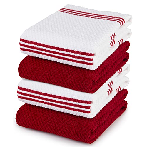 Sticky Toffee Torchons 100% Coton | Lot de 4 torchons de Cuisine | 40,6 x 71 cm | Rouge | Chiffons de Cuisine en Verre absorbants Doux de Barre de Restaurant