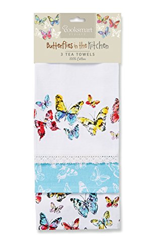 Cooksmart Butterfly - Lot de 3 torchons de Cuisine en Coton, Multicolore