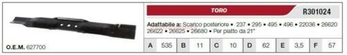 Lame TORO Tondeuse À Gazon R301024 237 295 495