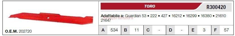 Lame TORO Tondeuse À Gazon GUARDIAN 53 222 427 R300420