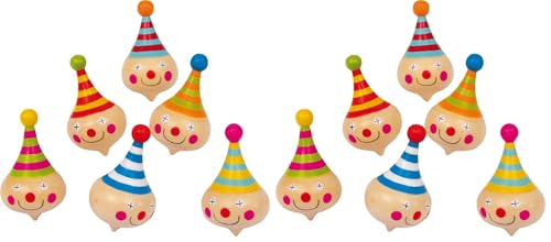 small foot 6138 toupies "Clown" en bois, avec visages de clown, comme cadeau ou pour les anniversaires, set de 6, à partir de 3 ans