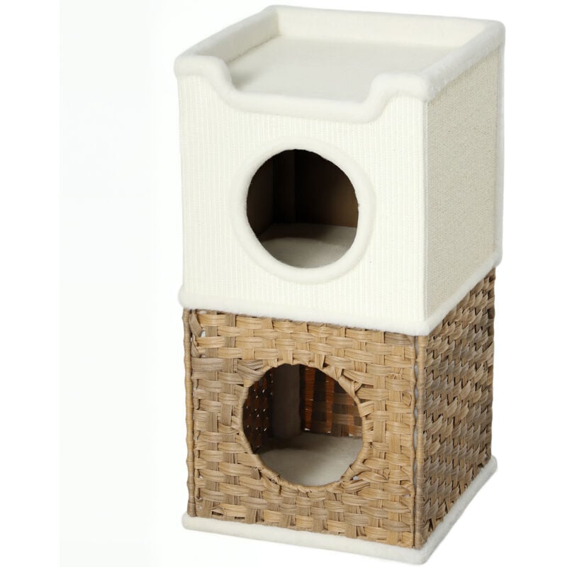 Pawhut - Arbre à chat cylindrique - tour à griffer pour chat - tonneau griffoir - 2 niches + plateforme - sisal peluche beige