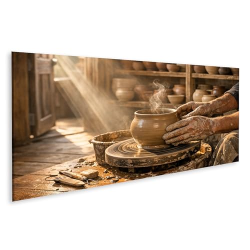 islandburner Tableau sur toile Art de poterie fait à la main : chope en argile sur le tour de potier - Panorama