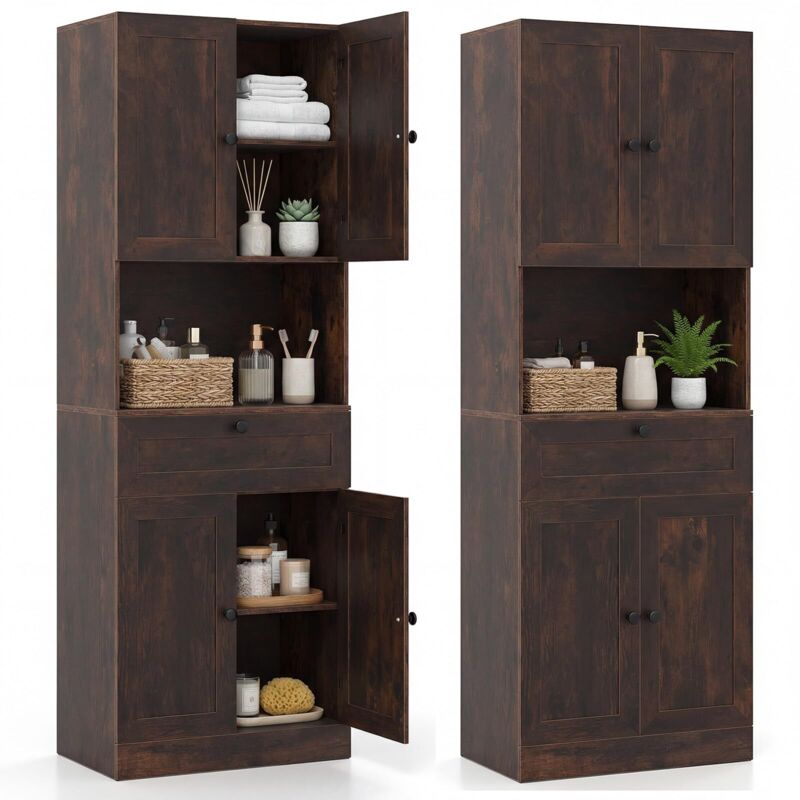 armoire de salle de bains haute tour à linge organisateur autoportant placard de cuisine buffet meuble en bois 4 portes tiroir étagère réglable comp