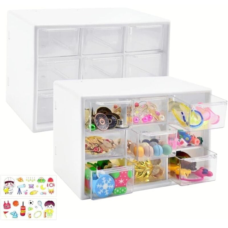 2 Pcs Casier Rangement Tiroir Plastique à 9 Compartiments Boîte Rangement Tiroir Bureau 18 10 11.8 cm Organiseur Bureau avec Tiroirs Tour Tiroir