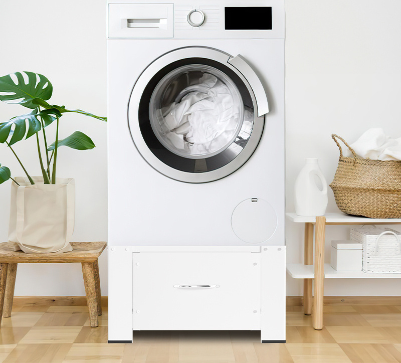 TolleTour Support de machine à laver, Support de machine à laver stable avec tiroir en acier blanc jusqu'à 150kg