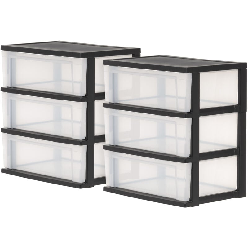 Iris Ohyama, Large Tour de Rangement en Plastique, 2 Tours, 34L par Tiroir, Noir, pour Bureau, Garage, Chambre à coucher