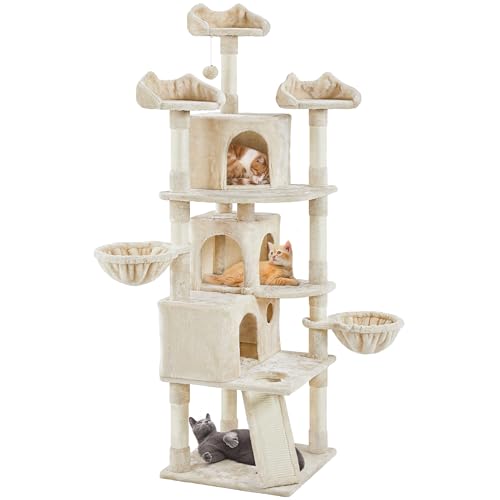 Yaheetech Arbre à Chat Géant 194 cm Tour pour Chat XXL Multiniveau avec 3 Perchoirs Design 2 Paniers 3 Niches Tour d’Escalade Griffoir Poteaux en Sisal Beige