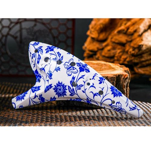 FUANA Ocarina Alto Do 12 trous en résine pour débutants, finition craquelée avec sac de transport, cordon tour de cou et livret de musique Bleu