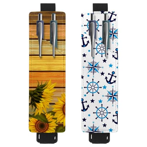Eslifey Lot de 2 porte-stylos portables, roue d'observation de la tour Eiffel de Paris, motif cœur d'amour, pochette pour 2 ou 3 stylos, bande élastique réglable, amovible, multicolore 5, 6.1x1.8in