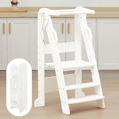 Skyline Tour d'apprentissage d'observation Enfant Montessori Pliable Chaise Réglable en Hauteur à partir de 1 an Learning Tower Meubles d'intérieur Chambre d'enfant Kitchen Helper Blanc