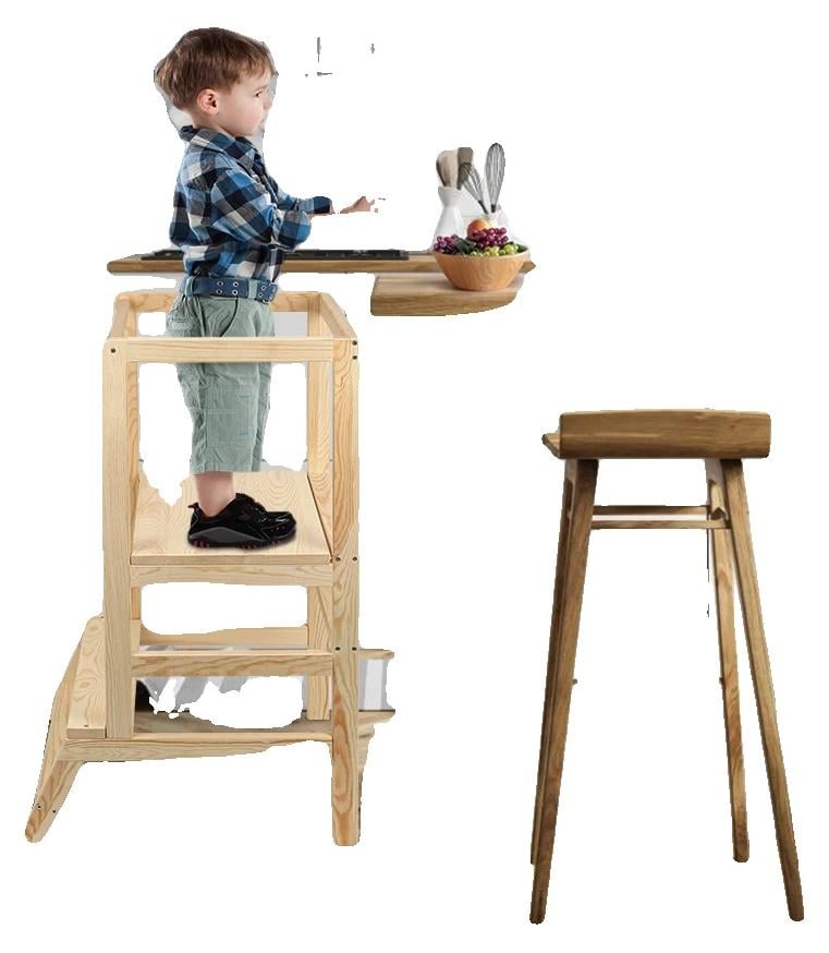 Skyline Tour d'apprentissage d'observation Enfant Montessori Pliable Chaise Réglable en Hauteur à partir de 1 an Learning Tower Meubles d'intérieur Chambre d'enfant Kitchen Helper Imitation Bois